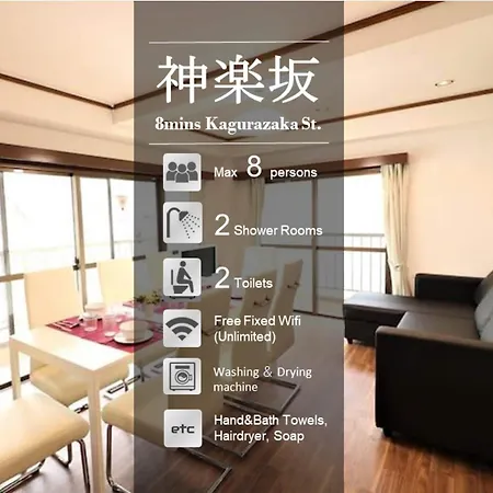 This spacious Nishigokencho Na3 apartment lies next to Akagi Shrine.